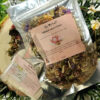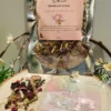 Here is our Herbal Yoni Steam. Calendula, Chamomile, Lavender, Motherwort, Mugwort, Oregano, Rose, Wormwood, Sargent Glory Vine, Miosotis Sylvatic, Sambac, Sage, Hibiscus, Cinnamon, and, Yarrow. All flowers and herbs are organic.