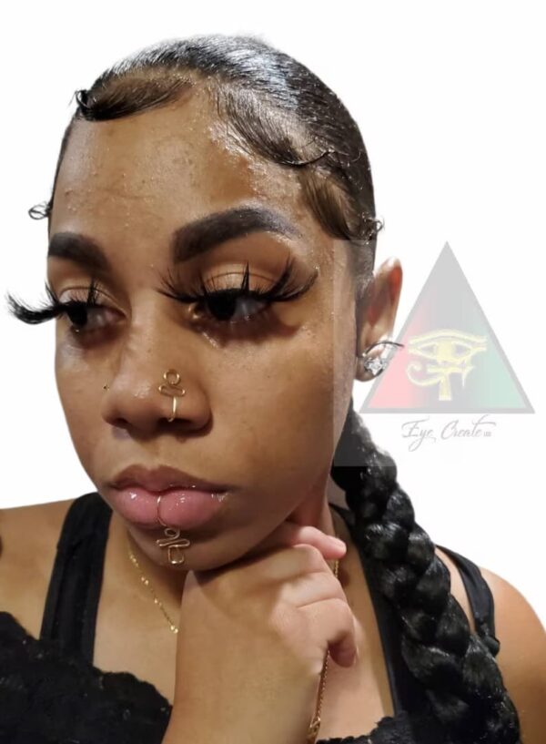 This beautiful Set is an original Eye Create LLC ™️ design. The lip cuff and nose cuff is no piercing needed which means that the pieces cannot fit into a pierced hole. Gently slide onto the nostril/lip and adjust to fit your nose and lip comfortably.