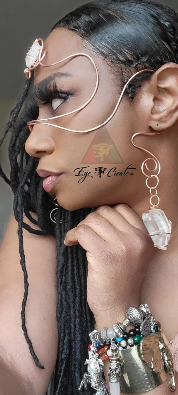 Crystal and Copper Wire Goddess Face Mask and Earring Copper Wrapped Crystal Jewelry
