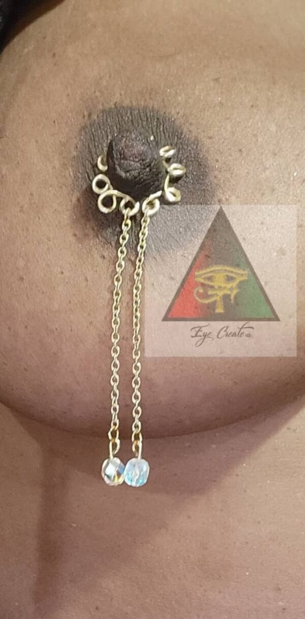 These cuties are an original design created by Eye Create LLC. Our Dangle and Drop Bead and Chain Nipple Cuffs are adjustable for a comfortable fit. Just place around the erect nipple and gently press the cuff together until secure.