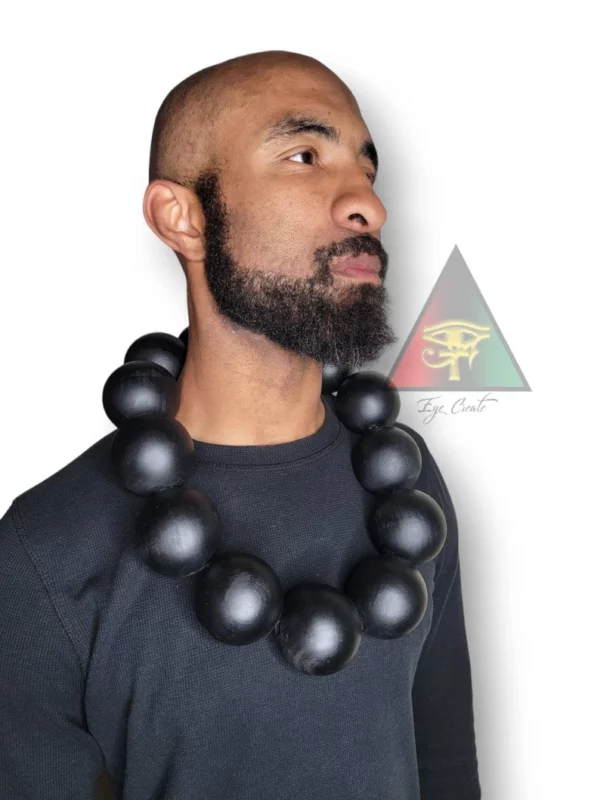 This Huge wooden necklace is make with solid 65MM wooden beads! THESE BEADS MEASURE OVER 2 1/2 INCHES WIDE! Each bead is hand drilled, hand painted, and made for the warrior in you!