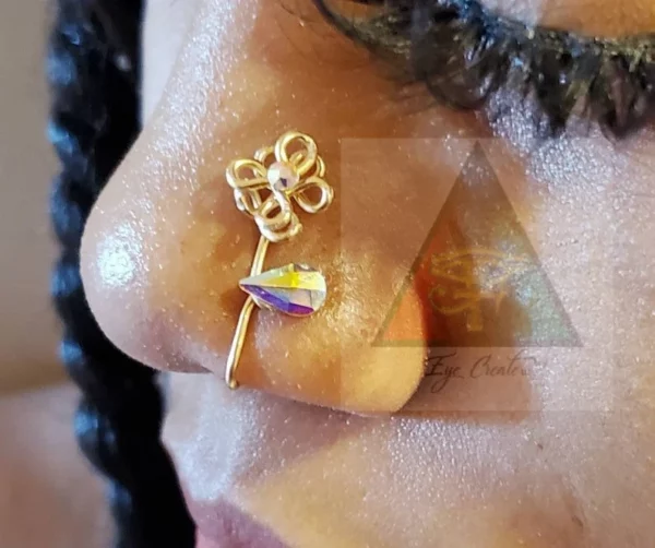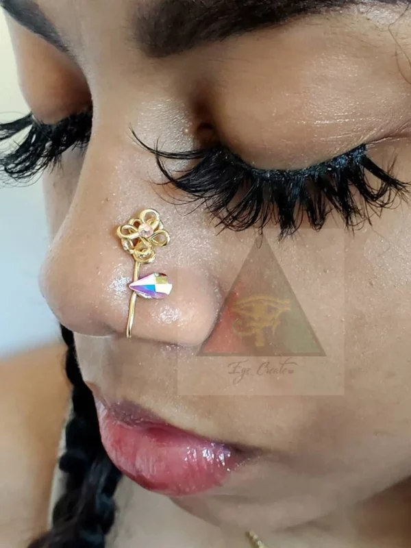 This beautiful item is handmade and no piercing needed. Our Flower Bomb nose cuffs are beautifully designed with Swarovski Crystals. Gently slide onto the nostril and press to fit comfortably onto the nose