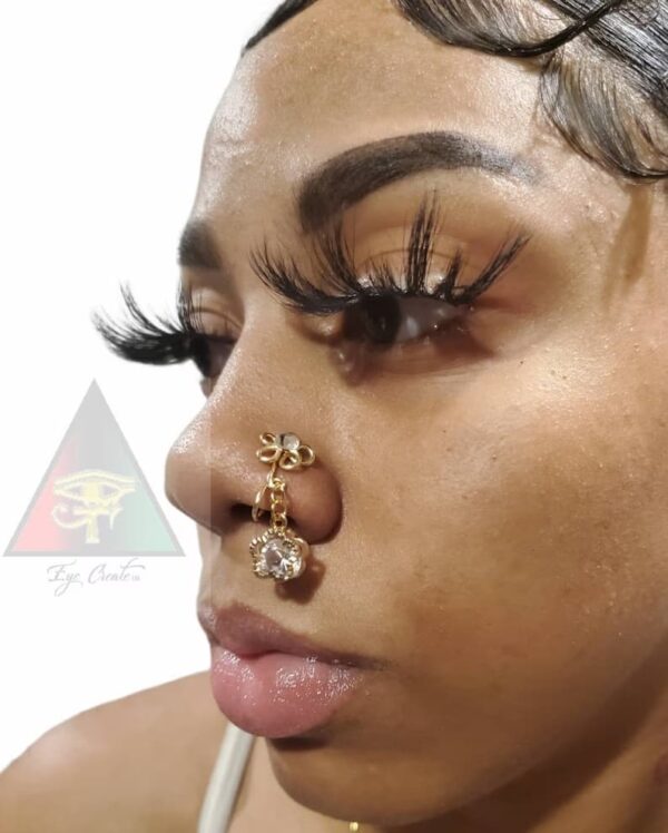 This beautiful piece is another original design created by Eye Create LLC. This piece is decorated with a Swarovski Crystal and dangling flower charm.