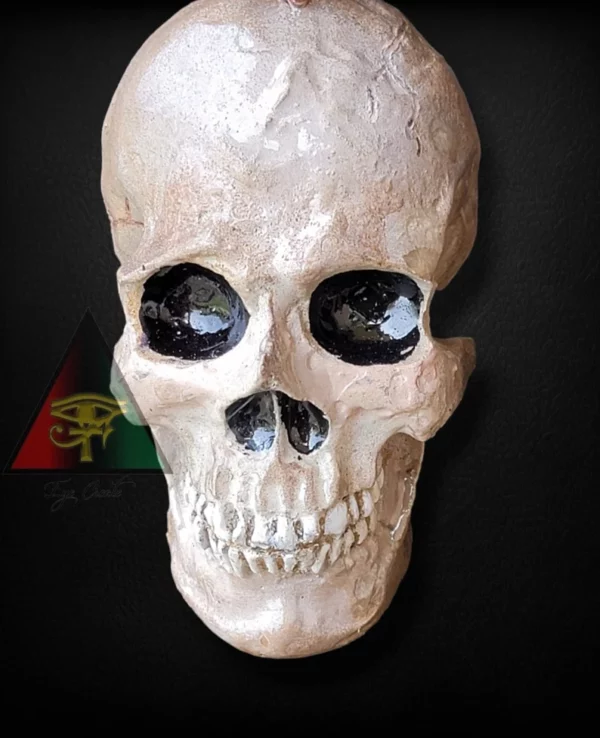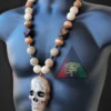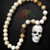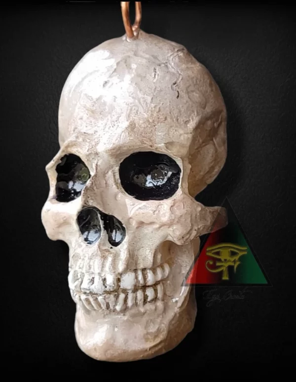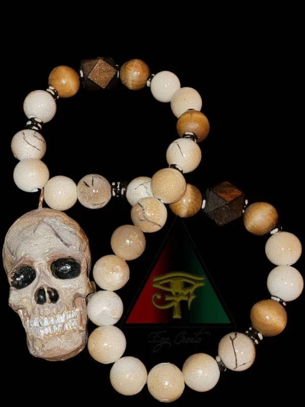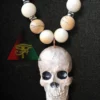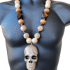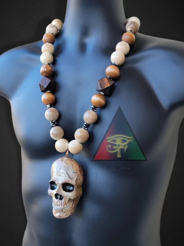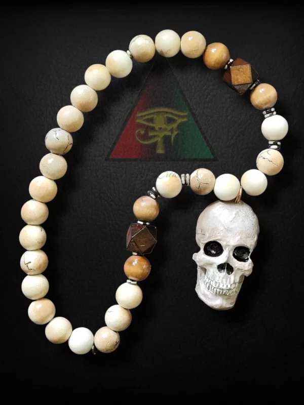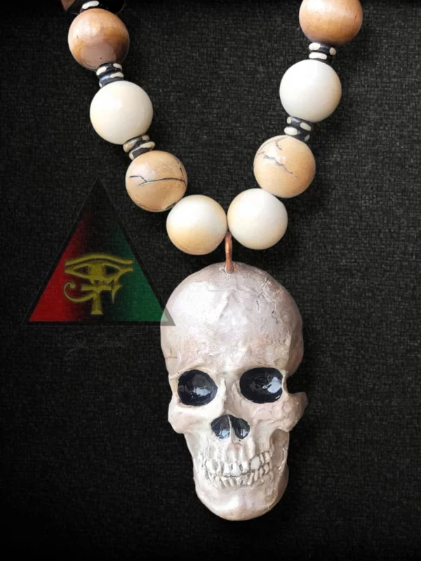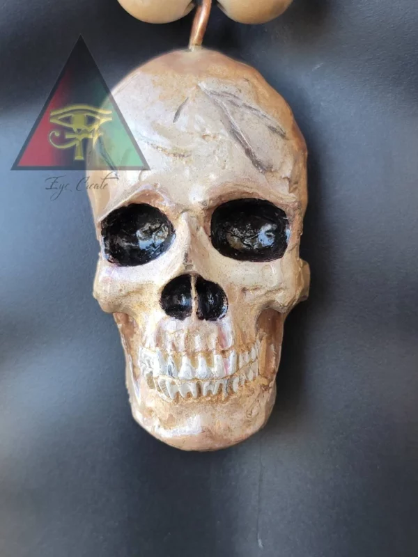 Our Homage to Our Ancestors Skull Necklace is an original design created by Eye Create LLC. The Skull piece is crafted and painted by hand as well as every bead on the necklace hand painted and engraved.