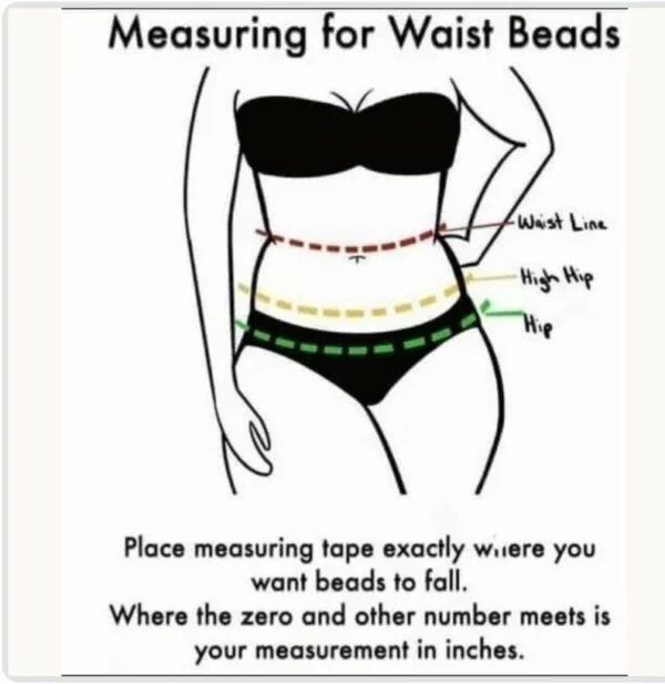 How do you know you are losing weight without weighing often? The waist beads will begin loosen as you lose weight. They will start to hang down. Make sure before tying that there is a bit of wiggle room for comfort.