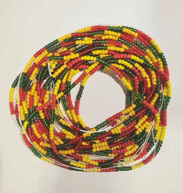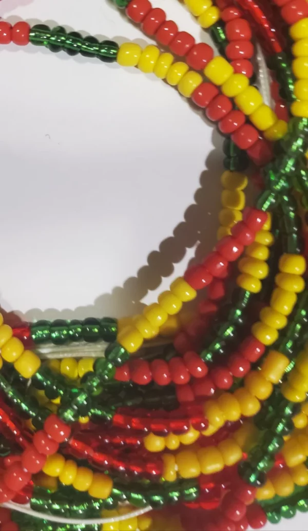 Red, Yellow And Green Rasta Waist Beads! COTTON TIE AROUND WAIST BEADS.